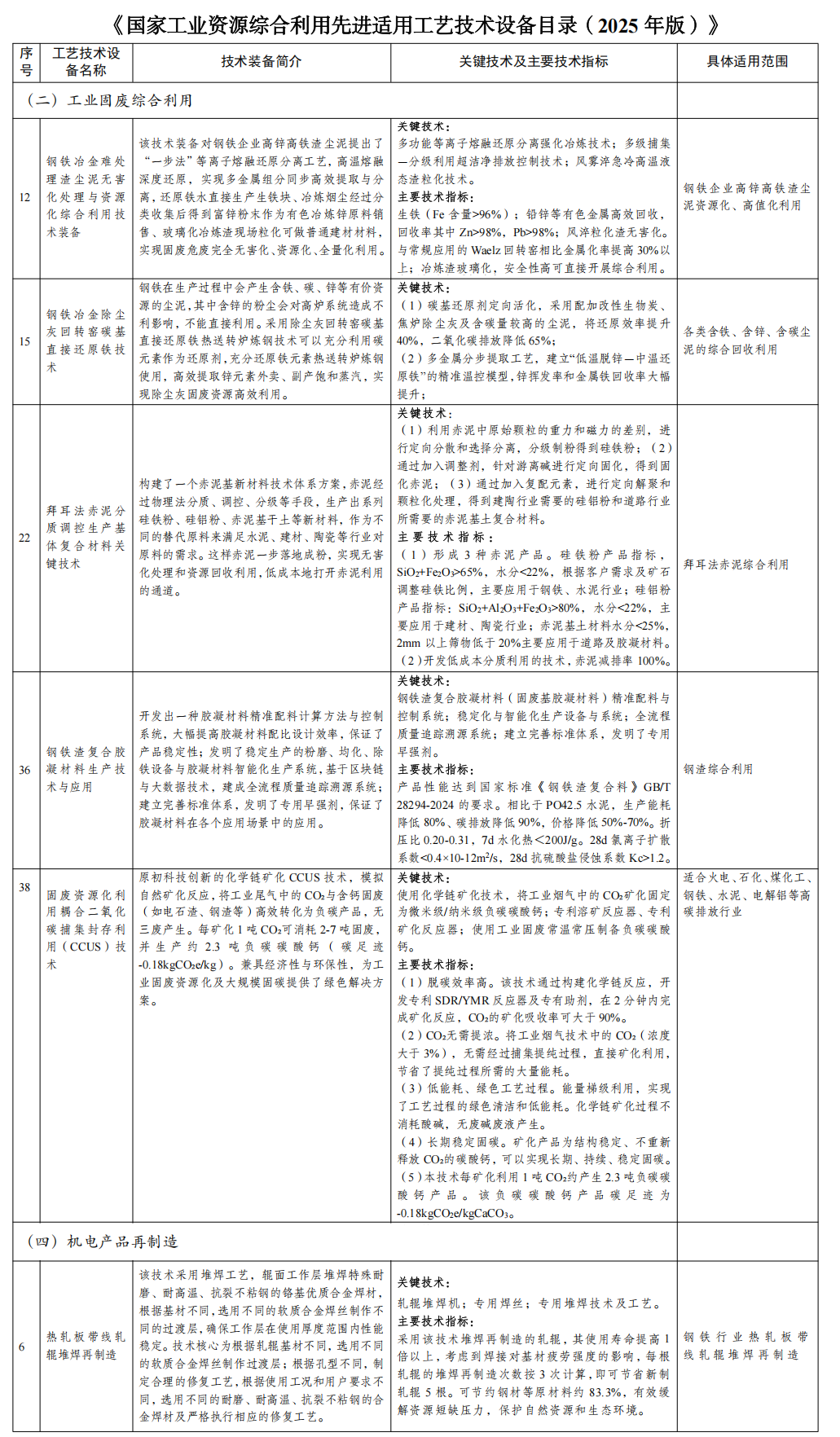9月11日,為加快推動(dòng)工業(yè)固廢源頭減量和規(guī)?;?,提升再生資源綜合利用水平,發(fā)展高端智能再制造,工業(yè)和信息化部、國家發(fā)展改革委、生態(tài)環(huán)境部編制了《國家工業(yè)資源綜合利用先進(jìn)適用工藝技術(shù)設(shè)備目錄(2025年版)》,于工信部官網(wǎng)進(jìn)行了公示。