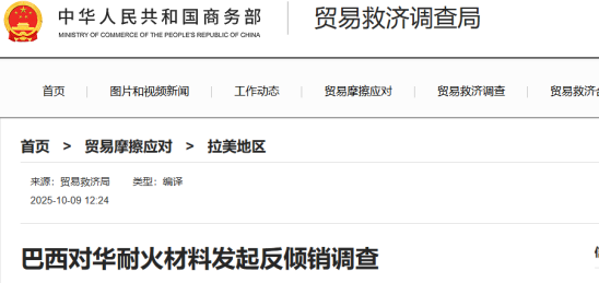 2025年9月30日,巴西外貿(mào)秘書處在官方日報發(fā)布2025年第75號公告,決定應(yīng)巴西協(xié)會Associa??o Brasileira de Fabricantes de Refratários(Abrafar)申請,對進口自中國的耐火材料(葡萄牙語:refratários básicos e n?o básicos)啟動反傾銷調(diào)查。涉案產(chǎn)品的南共市稅號為6815.91.10、6815.91.90、6815.99.19、6815.99.90、6902.10.18、6902.10.19、6902.10.90、6902.20.10、6902.20.91、6902.20.99和6902.90.90。本案傾銷調(diào)查期為2023年10月至2024年9月,損害分析期為2019年10月至2024年9月。