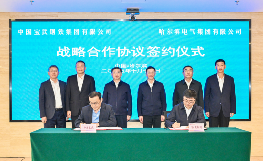 10月14日,中國寶武與哈電集團在哈爾濱簽署戰(zhàn)略合作協(xié)議,中國寶武黨委書記、董事長胡望明與哈電集團董事長、黨委書記黃偉,董事、總經理、黨委副書記劉清勇見證簽約并座談交流。