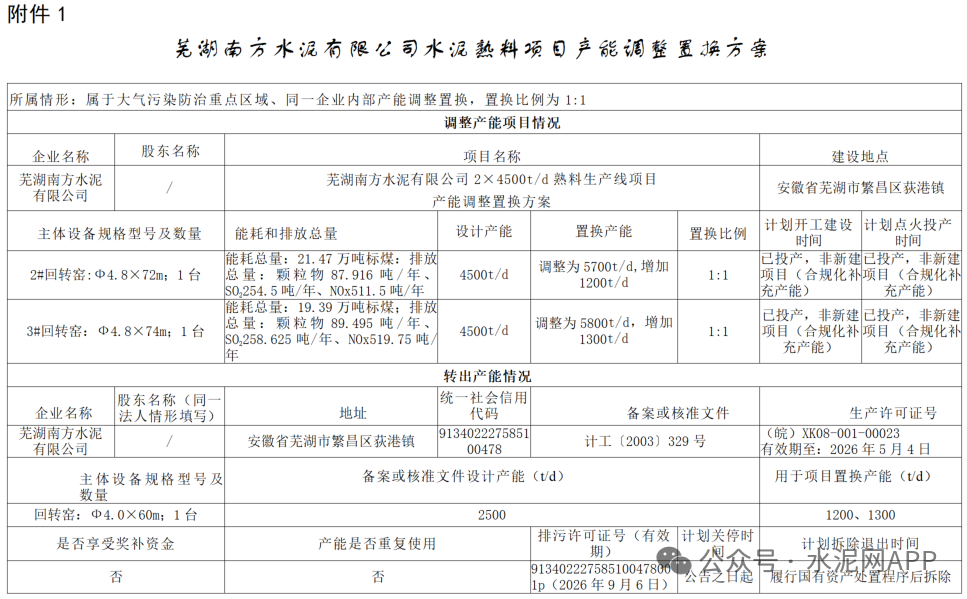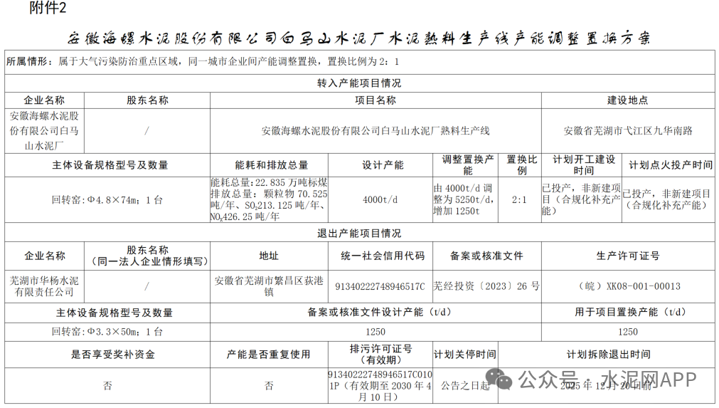 10月16日,安徽省工信廳發(fā)布關于蕪湖南方水泥有限公司、安徽海螺水泥股份有限公司白馬山水泥廠水泥熟料生產(chǎn)線產(chǎn)能調(diào)整置換方案的公告。