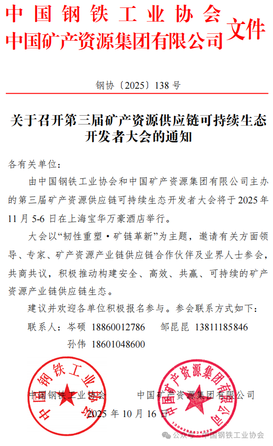 關于召開第三屆礦產(chǎn)資源供應鏈可持續(xù)生態(tài)開發(fā)者大會的通知