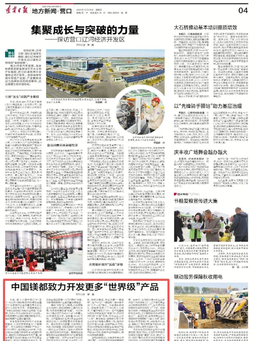堅(jiān)持創(chuàng)新驅(qū)動,為高速發(fā)展點(diǎn)燃“新引擎”。大石橋市積極推動菱鎂產(chǎn)業(yè)延鏈補(bǔ)鏈發(fā)展,向鎂化工、鎂建材、鎂合金產(chǎn)業(yè)發(fā)力,開發(fā)更多“世界級”菱鎂產(chǎn)品。2025年,大石橋市謀立推建涉鎂工業(yè)項(xiàng)目32個(gè),總投資12.8億元。綠色發(fā)展與智能化轉(zhuǎn)型同頻共振。2025年,光陽耐火等3家企業(yè)獲評營口市級綠色工廠,遼寧青花等企業(yè)沖刺國家級綠色工廠,全市累計(jì)培育國家和省市級綠色工廠7家。在智能化領(lǐng)域,中鎂高溫等企業(yè)獲評省級數(shù)字化車間,遼寧嘉順成為先進(jìn)級智能工廠。截至目前,全市涉鎂企業(yè)中有國家級專精特新“小巨人”4家、省級制造業(yè)單項(xiàng)冠軍3家,創(chuàng)新型中小企業(yè)、智能工廠等各類榮譽(yù)不勝枚舉,創(chuàng)新能力與核心競爭力后勁十足。