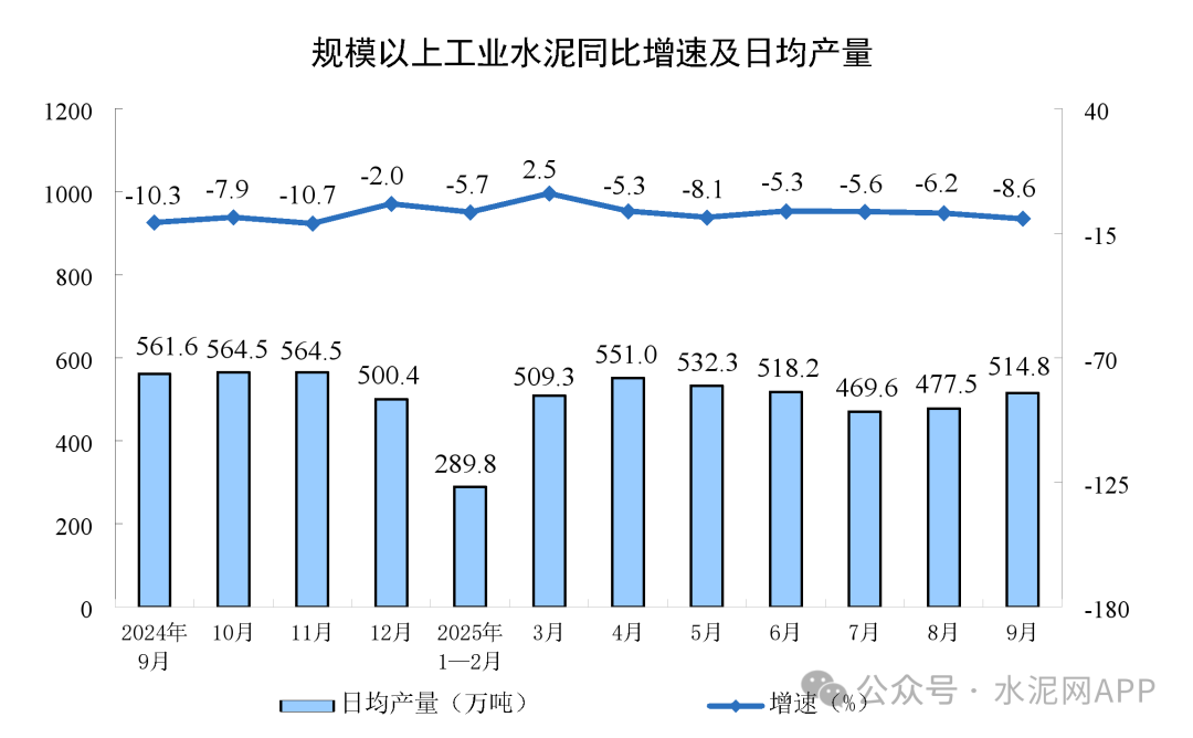 據(jù)國(guó)家統(tǒng)計(jì)局?jǐn)?shù)據(jù),9月份,規(guī)模以上工業(yè)增加值同比實(shí)際增長(zhǎng)6.5%(增加值增速均為扣除價(jià)格因素的實(shí)際增長(zhǎng)率)。從環(huán)比看,9月份,規(guī)模以上工業(yè)增加值比上月增長(zhǎng)0.64%。1—9月份,規(guī)模以上工業(yè)增加值同比增長(zhǎng)6.2%。其中水泥行業(yè)9月份產(chǎn)量15444萬(wàn)噸,同比下降8.6%,1-9月全國(guó)水泥產(chǎn)量125936萬(wàn)噸,同比下降5.2%。此外,數(shù)據(jù)顯示,2024年1-9月全國(guó)水泥產(chǎn)量為132670萬(wàn)噸,由此計(jì)算,今年1-9月水泥全口徑產(chǎn)量比去年同期減少6734萬(wàn)噸,降幅5.08%。