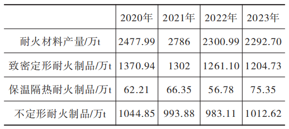 表1 2020—2023年我國耐火材料制品產(chǎn)量情況
