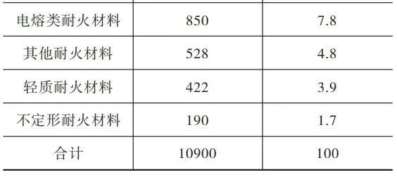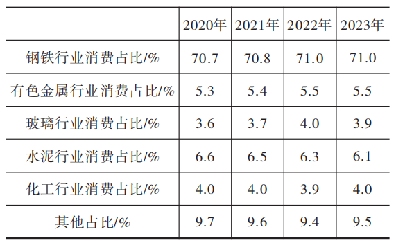 表3 2020—2023年我國耐火材料下游產(chǎn)業(yè)消費情況