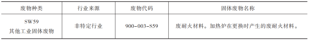 表5 《固體廢物分類與代碼目錄》廢耐火材料