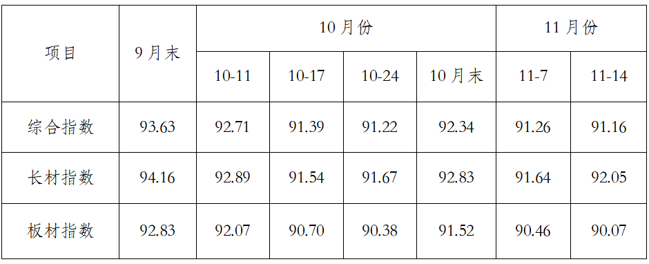 主要鋼材品種價(jià)格及指數(shù)變化情況表