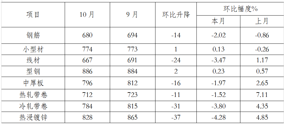 一、10月份國(guó)內(nèi)鋼價(jià)指數(shù)均值環(huán)比繼續(xù)下降