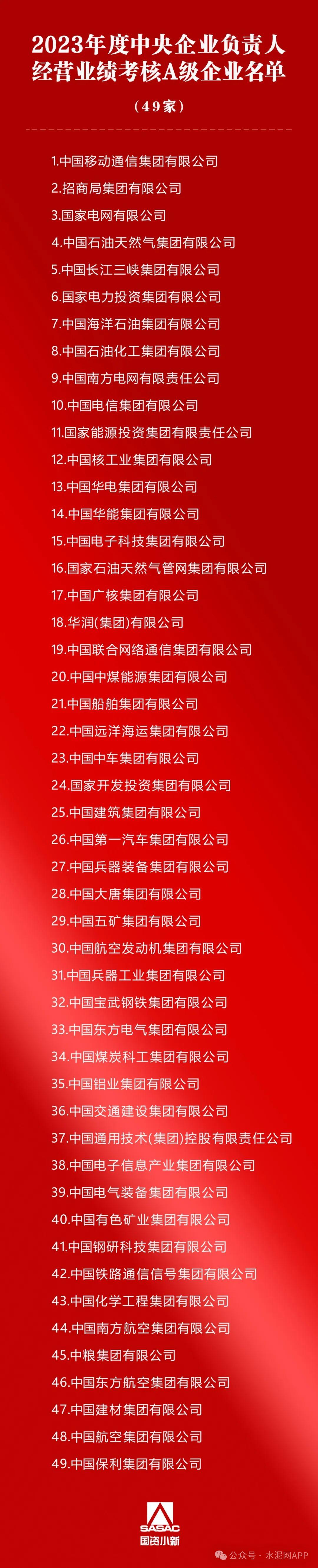 中國建材集團(tuán)等49家公司在列。A級(jí)企業(yè)名單如下: