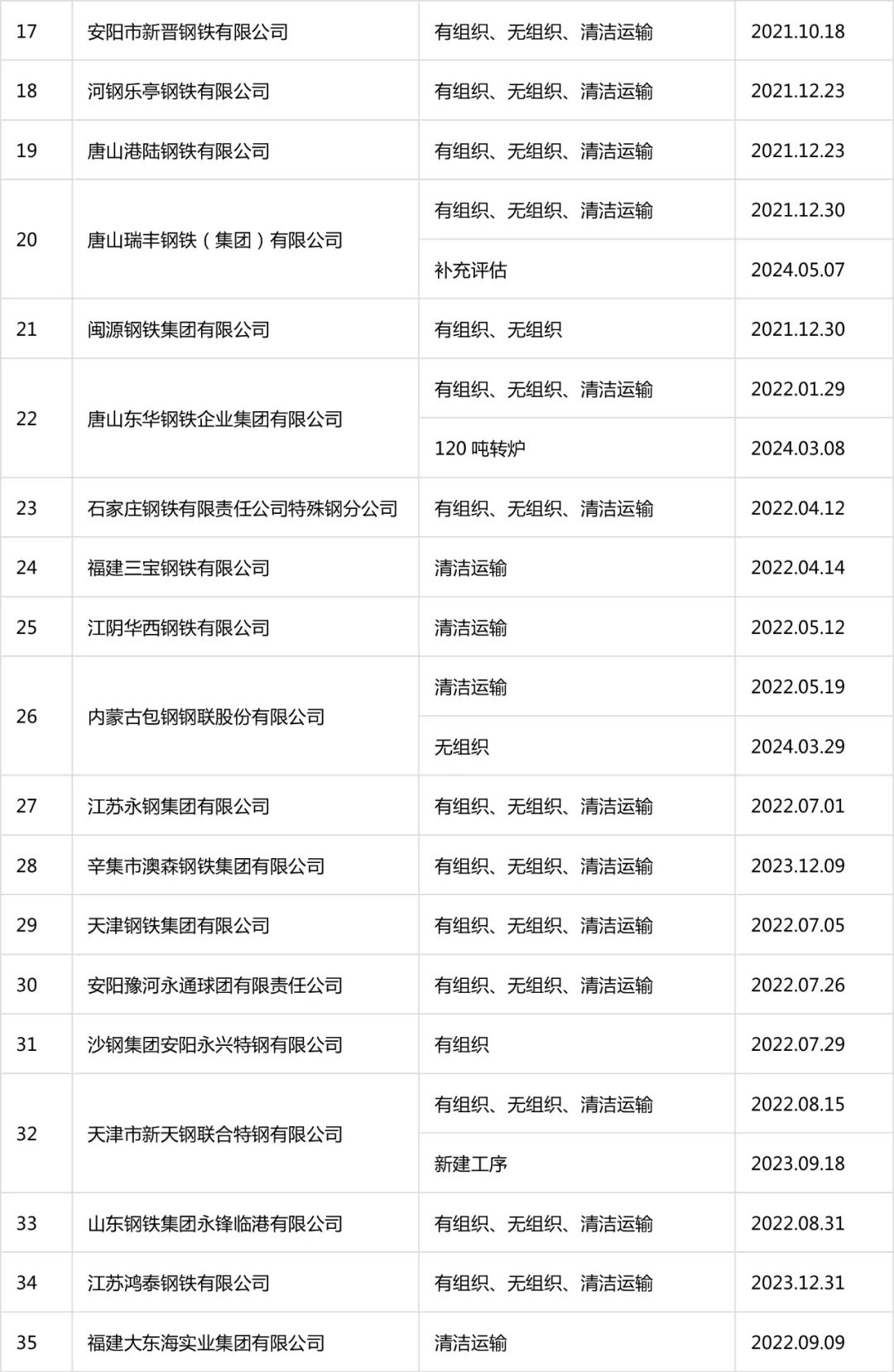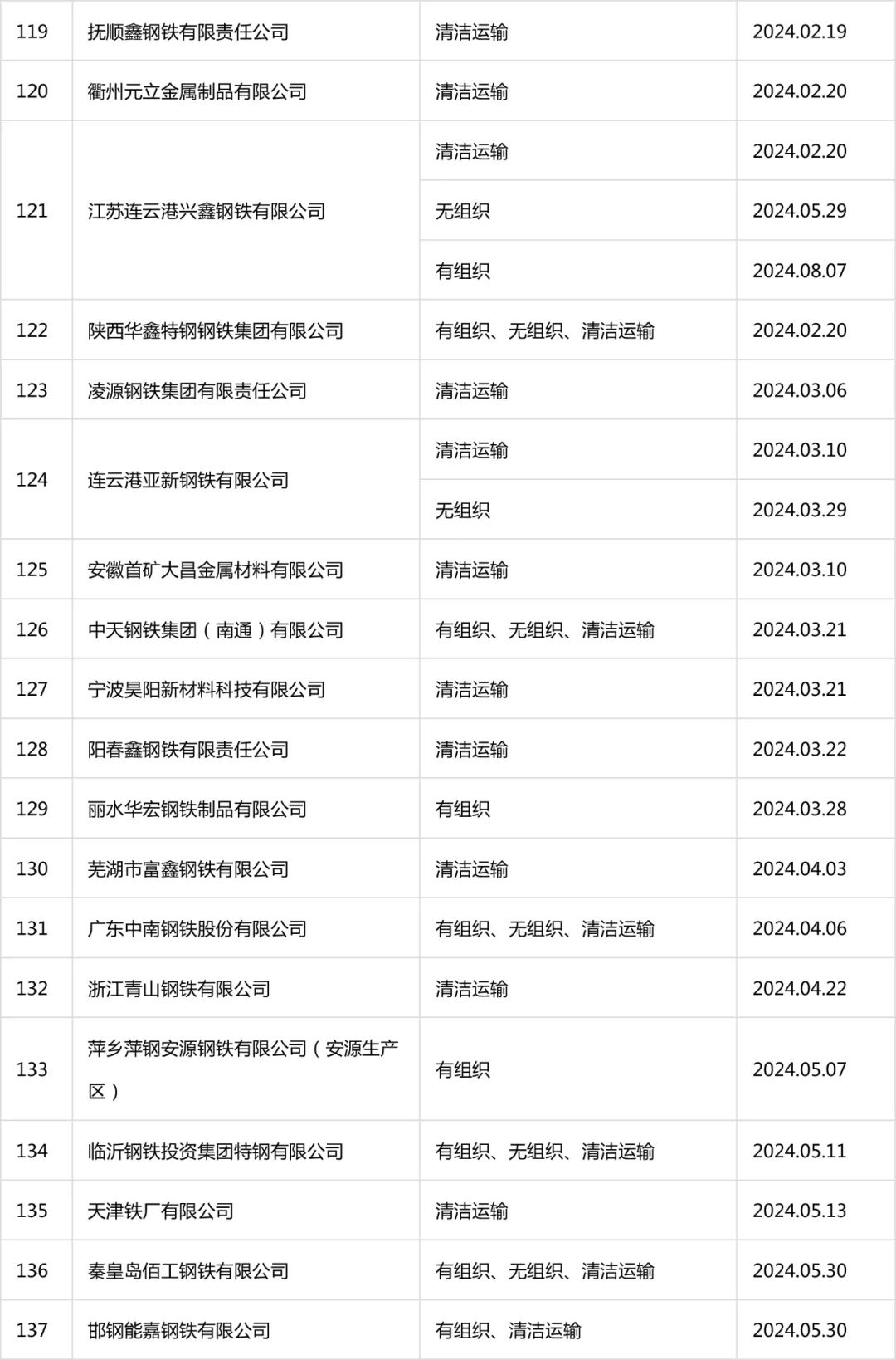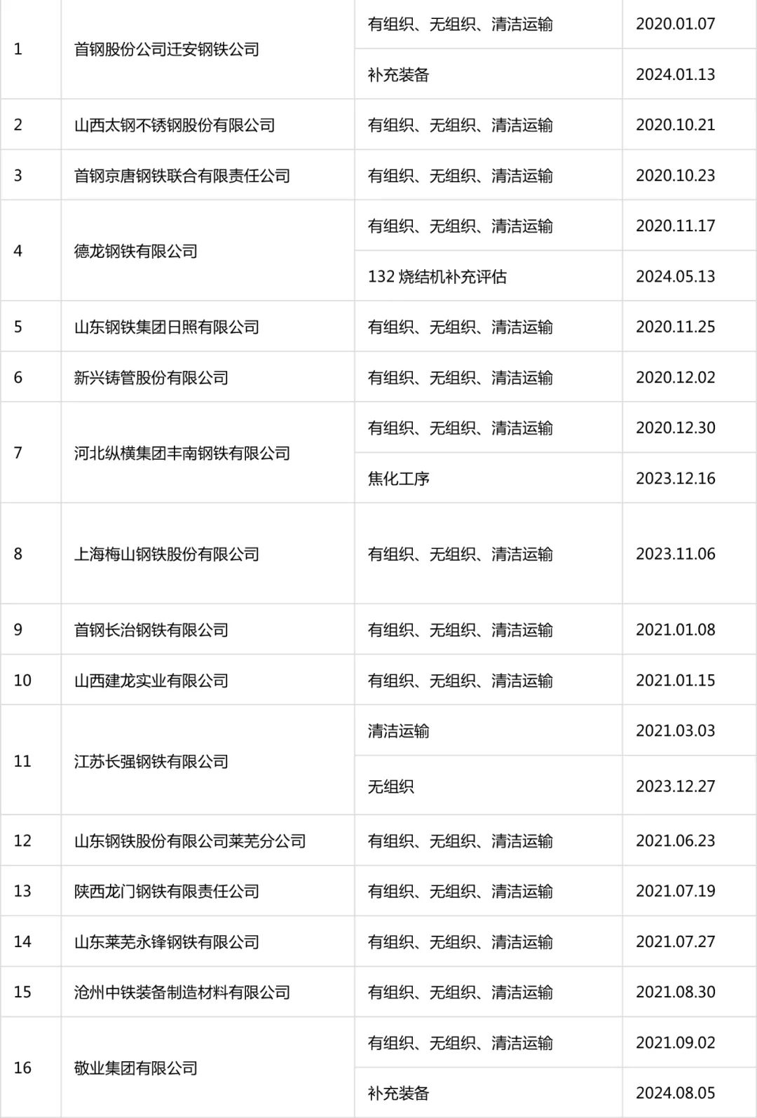 自2020年8月起,中國鋼鐵工業(yè)協(xié)會(huì)開展了鋼鐵企業(yè)超低排放改造和評估監(jiān)測進(jìn)展情況公示工作。截至目前,鋼協(xié)網(wǎng)站已公示企業(yè)名單及各企業(yè)公示內(nèi)容如下: