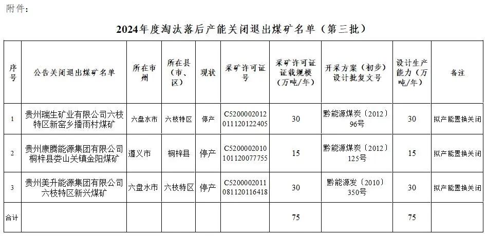 附件:2024年度淘汰落后產(chǎn)能關(guān)閉退出煤礦名單(第三批)