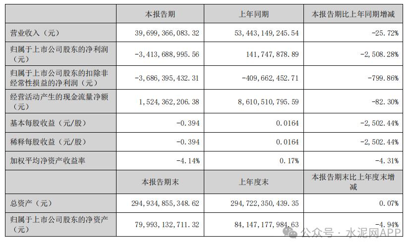 天山股份8月26日晚間發(fā)布2024年半年度報(bào)告,公司上半年實(shí)現(xiàn)營業(yè)收入396.99億元,同比下降25.72%;凈虧損34.14億元,同比盈轉(zhuǎn)虧;基本每股收益-0.394元。