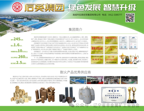 后英集團于2005年被遼寧省工信廳評定為省級技術(shù)中心企業(yè)。2010年與遼寧科技大學(xué)共同組建了冶金耐火研究院,現(xiàn)有包括博士生研究生在內(nèi)研發(fā)人員167名,發(fā)明及實用專利260多項。先后榮獲“中國500強企業(yè)”“全國誠信守法先進企業(yè)”“全國出口創(chuàng)匯先進單位”“遼寧省最具活力企業(yè)”等榮譽稱號。2021年以來,獲得了國家級“綠色工廠”和省級“綠色礦山”稱號。