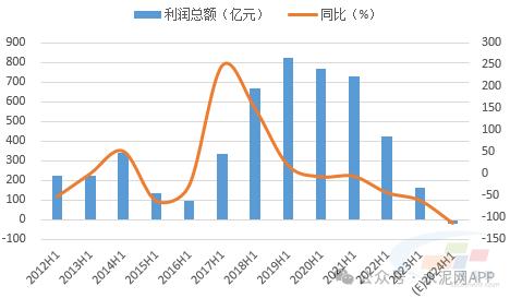 圖:2012年以來上半年水泥行業(yè)利潤總額