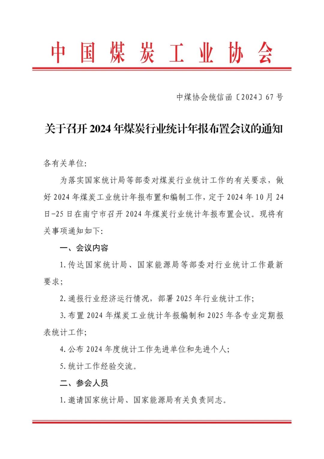 關(guān)于召開(kāi)2024年煤炭行業(yè)統(tǒng)計(jì)年報(bào)布置會(huì)議的通知