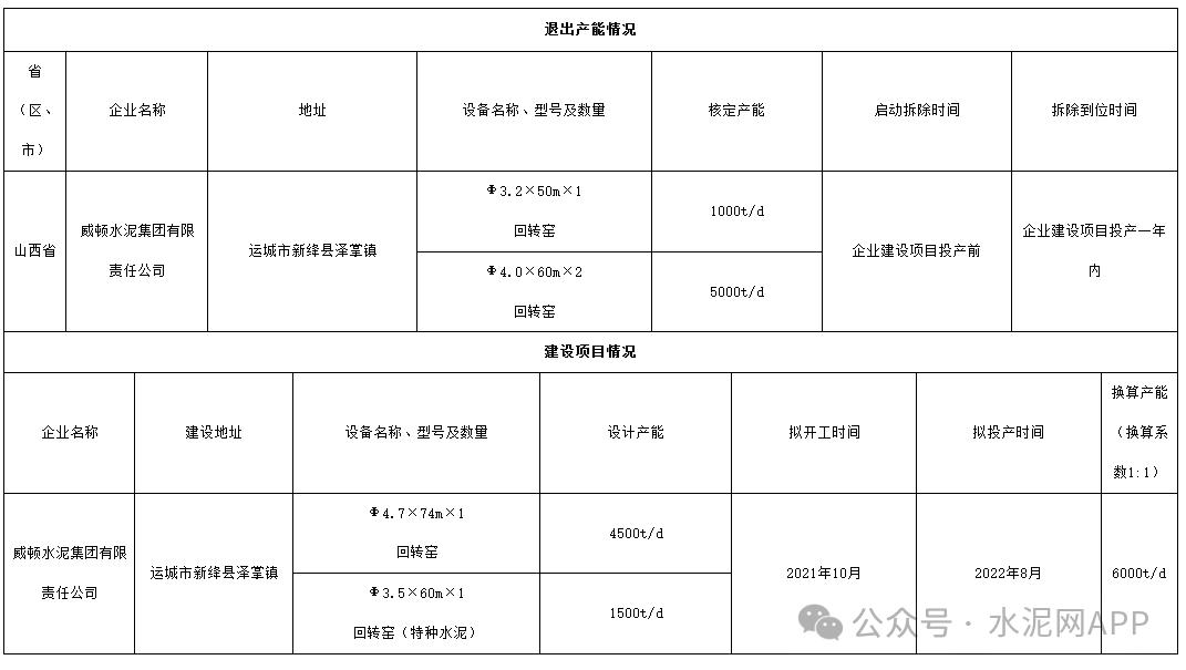 9月13日,山西省工信廳發(fā)布“關(guān)于威頓水泥集團有限責(zé)任公司產(chǎn)能退出設(shè)備拆除情況的公告”稱,根據(jù)工業(yè)和信息化部《水泥玻璃行業(yè)產(chǎn)能置換實施辦法》有關(guān)規(guī)定,經(jīng)新絳縣工信局、運城市工信局驗收確認和專家核查等工作程序,威頓水泥集團有限責(zé)任公司數(shù)字化智能化綠色工廠技術(shù)改造項目退出生產(chǎn)線主體設(shè)備Φ3.2米×50米回轉(zhuǎn)窯1臺、Φ4.0米×60米回轉(zhuǎn)窯2臺已拆除,予以公告。