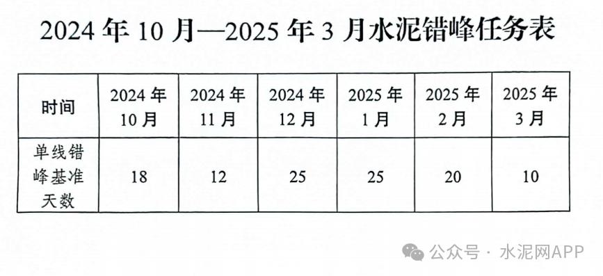錯(cuò)峰范圍:重慶所有水泥熟料生產(chǎn)線。錯(cuò)峰時(shí)間:2024年度單條水泥熟料生產(chǎn)線錯(cuò)峰任務(wù)基數(shù)為180天、2025年度單條水泥熟料生產(chǎn)線錯(cuò)峰任務(wù)基數(shù)為190天,其中2024年10月至2025年3月錯(cuò)峰任務(wù)為110天。