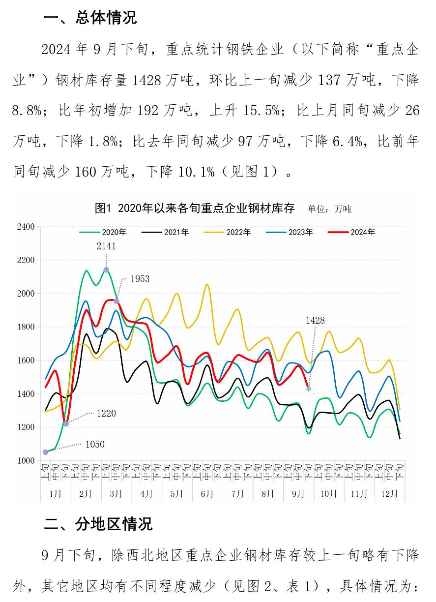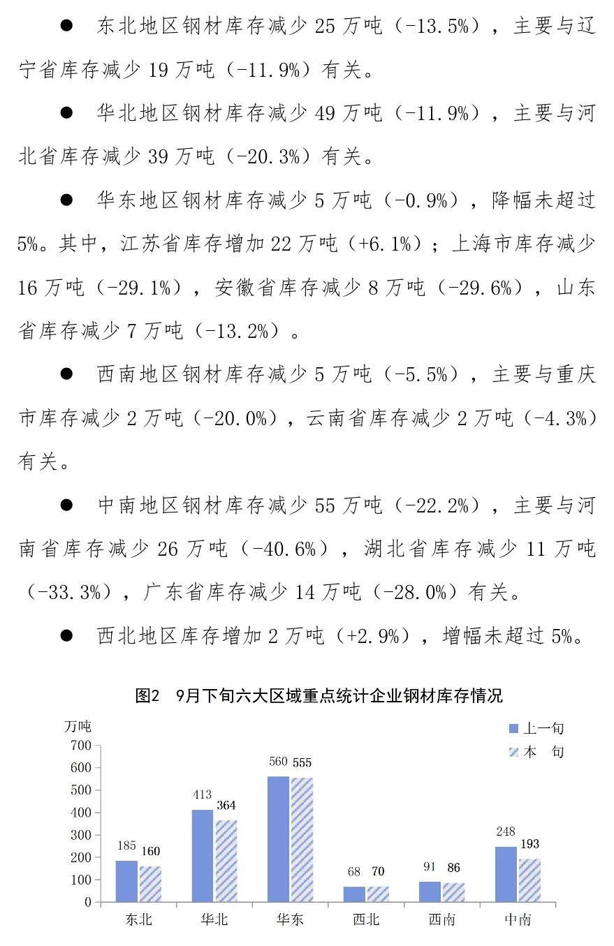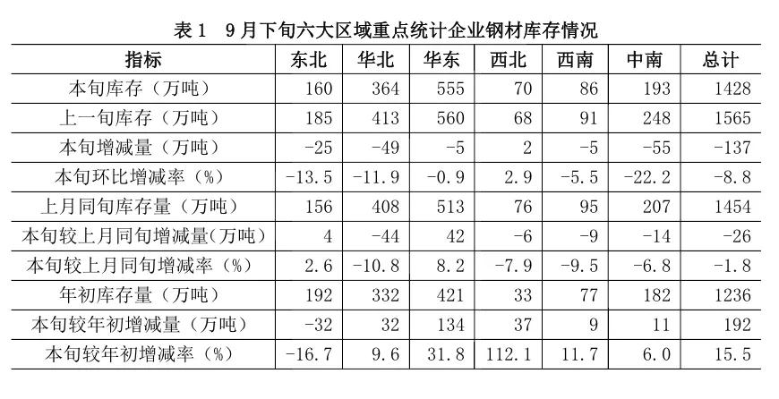 9月下旬重點企業(yè)鋼材庫存旬報