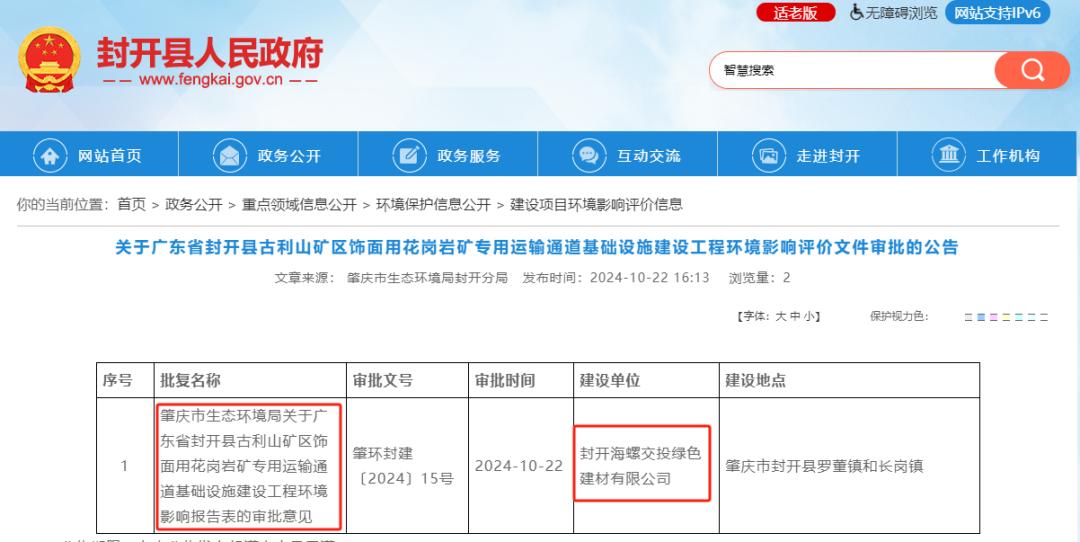 近日,廣東肇慶市生態(tài)環(huán)境局封開(kāi)分局審批通過(guò)封開(kāi)縣古利山礦區(qū)飾面用花崗巖礦專用運(yùn)輸通道基礎(chǔ)設(shè)施建設(shè)工程環(huán)境影響評(píng)價(jià)文件。