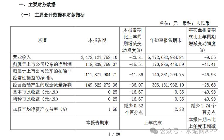 10月23日晚間,寧夏建材發(fā)布前三季度報(bào)告,報(bào)告期內(nèi)公司實(shí)現(xiàn)營業(yè)收入67.73億元,同比減少9.55%;歸屬于上市公司股東的凈利潤1.71億元,同比減少41.41%;歸屬于上市公司股東扣除非經(jīng)常性損益凈利潤1.40億元,同比減少46.93%。