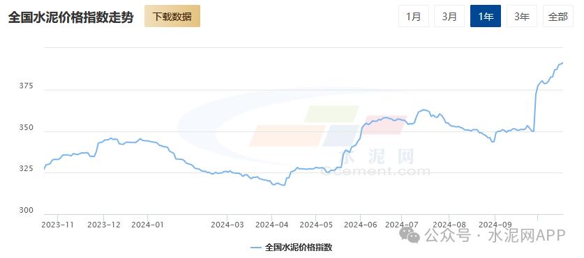 10月22日,全國水泥價(jià)格指數(shù)報(bào)收391.22點(diǎn),同比漲幅達(dá)20.1%。自9月底開始,該指數(shù)呈持續(xù)上漲姿態(tài)。