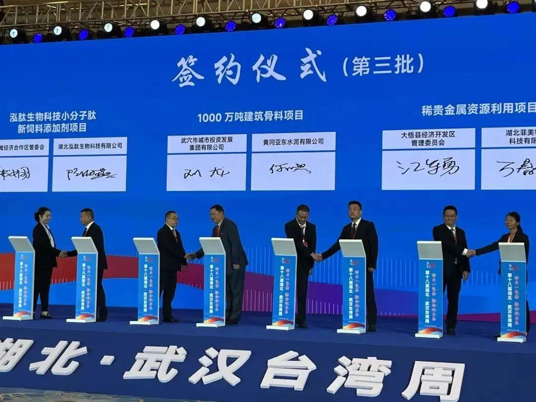 10月26日,第十八屆湖北·武漢臺灣周在武漢開幕,聚焦“鄂臺一家親 融合向未來”主題,共商深化鄂臺合作,共促兩岸融合發(fā)展。開幕式上的臺資項目集中簽約儀式中,武穴市臺資企業(yè)黃岡亞東水泥有限公司與武穴城市投資發(fā)展集團有限公司完成1000萬噸建筑骨料項目簽約。