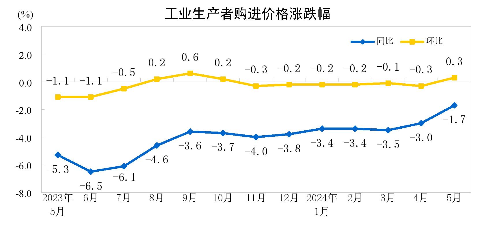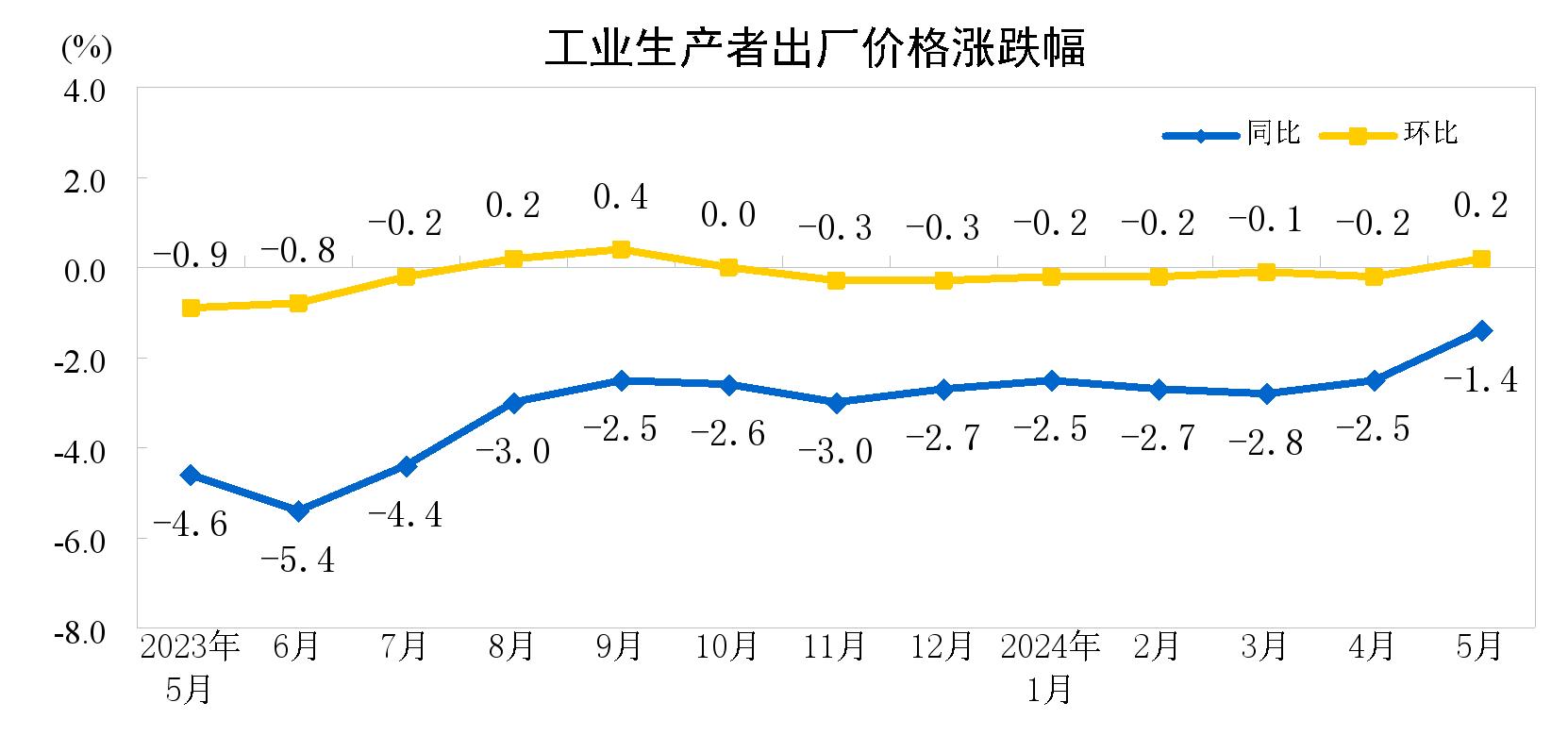 國家統(tǒng)計(jì)局:2024年5月份工業(yè)生產(chǎn)者出廠價(jià)格同比降幅明顯收窄 環(huán)比上漲