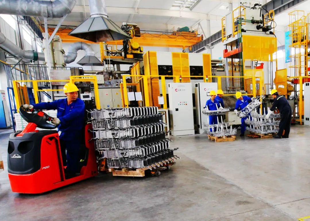 △博奧鎂鋁生產(chǎn)車間,工人將產(chǎn)品運(yùn)輸入庫。(資料圖)