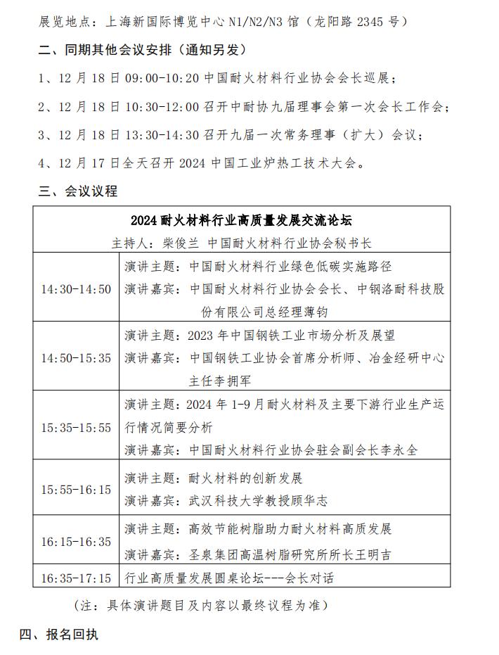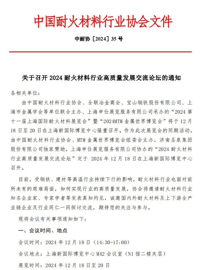 中耐協(xié):關(guān)于召開 2024 耐火材料行業(yè)高質(zhì)量發(fā)展交流論壇的通知