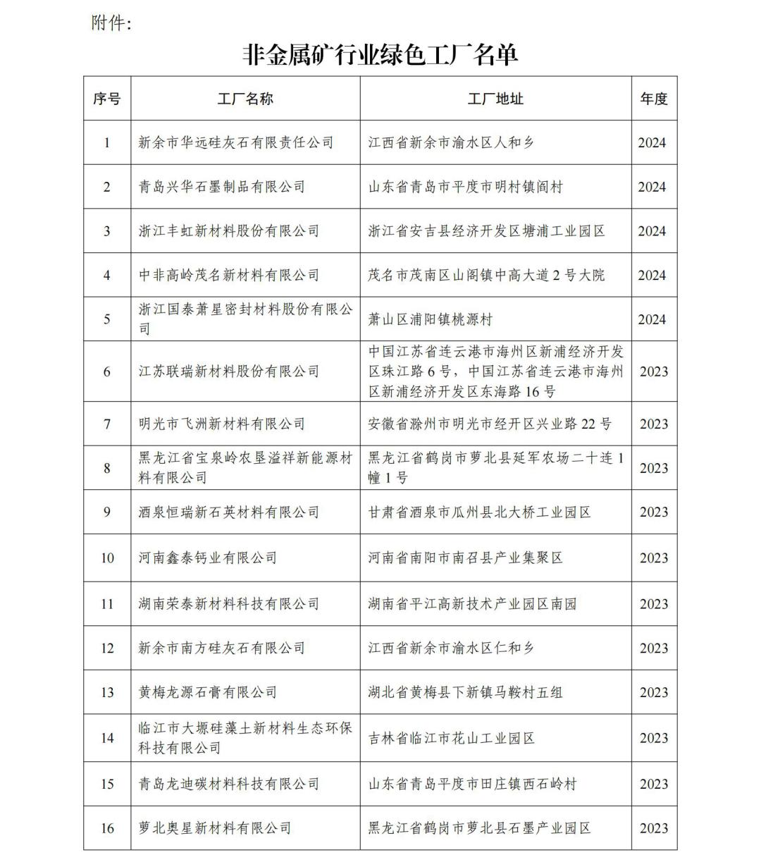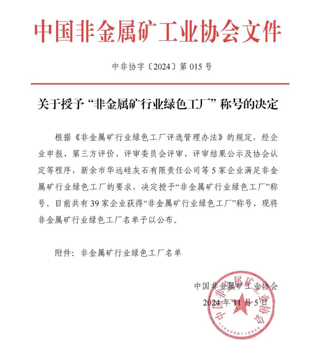 關(guān)于授予“非金屬礦行業(yè)綠色工廠”稱號(hào)的決定
