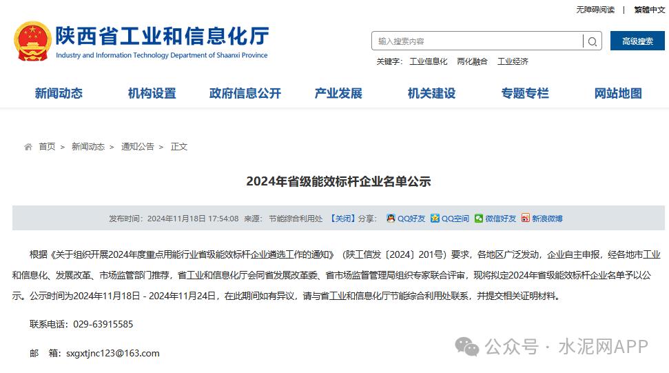 11月18日,陜西工信廳發(fā)布“2024年省級能效標桿企業(yè)名單公示”。