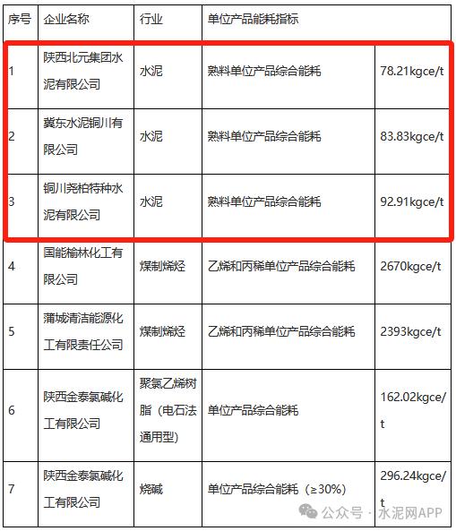 其中陜西北元集團水泥有限公司、冀東水泥銅川有限公司、銅川堯柏特種水泥有限公司入選。