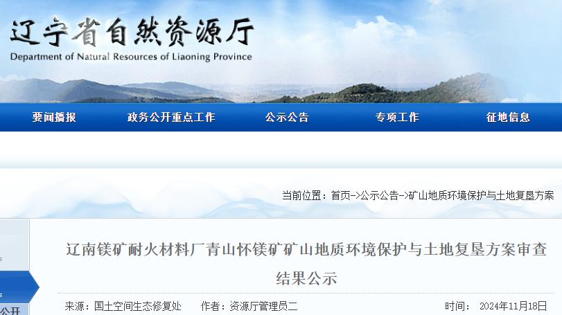 根據(jù)《國(guó)土資源部辦公廳關(guān)于做好礦山地質(zhì)環(huán)境保護(hù)與土地復(fù)墾方案編報(bào)有關(guān)工作的通知》(國(guó)土資規(guī)〔2016〕21號(hào))和關(guān)于印發(fā)《礦山地質(zhì)環(huán)境保護(hù)與土地復(fù)墾方案省級(jí)審查管理辦法(試行)》的通知(遼自然資發(fā)〔2022〕129號(hào))有關(guān)要求,我廳委托自然資源事務(wù)服務(wù)中心組織專家對(duì)遼南鎂礦耐火材料廠青山懷鎂礦礦山地質(zhì)環(huán)境與土地復(fù)墾方案進(jìn)行了審查?,F(xiàn)將擬同意通過(guò)的該方案及專家評(píng)審意見(jiàn)進(jìn)行公示,公示期自發(fā)布之日起7個(gè)工作日。