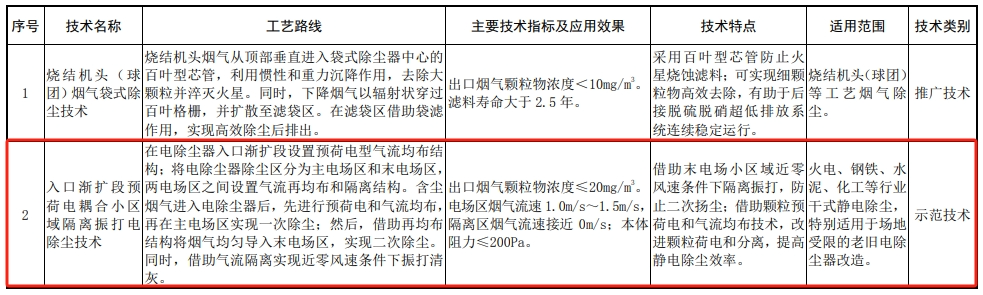 其中,包括三項(xiàng)水泥行業(yè)先進(jìn)技術(shù),分別是:入口漸擴(kuò)段預(yù)荷電耦合小區(qū)域隔離振打電除塵技術(shù):適用于火電、鋼鐵、水泥、化工等行業(yè)干式靜電除塵,特別適用于場地受限的老舊電除塵器改造;