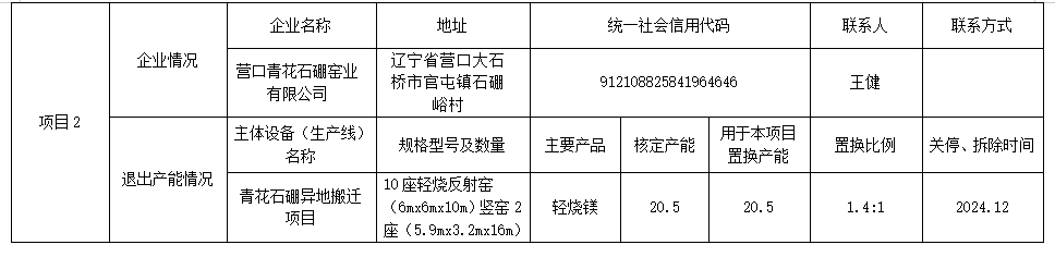 營(yíng)口青花石硼窯業(yè)有限公司產(chǎn)能置換方案表