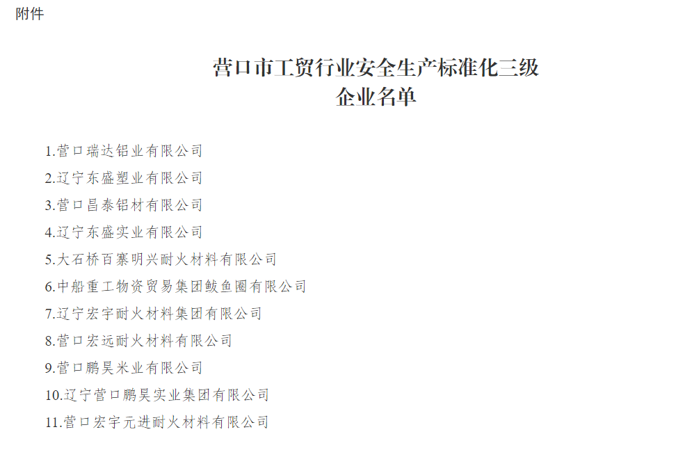 附件:營口市工貿(mào)行業(yè)安全生產(chǎn)標(biāo)準(zhǔn)化三級企業(yè)名單