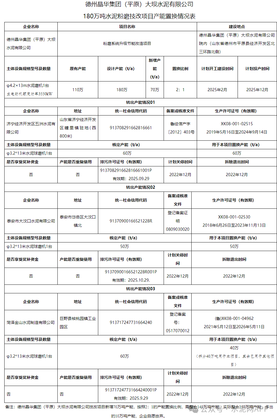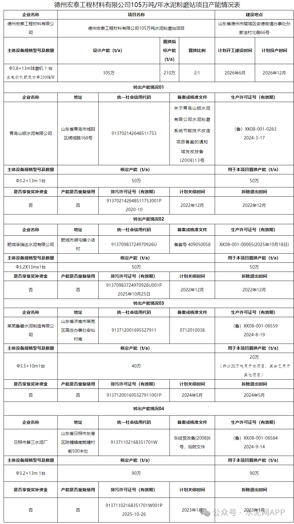 莒縣中聯(lián)水泥有限公司擬新建φ3.8×14.5m水泥磨機(jī)一臺(tái),年產(chǎn)能130萬(wàn)噸;德州宏泰工程材料有限公司擬新建φ3.8×13m水泥磨機(jī)一臺(tái),年產(chǎn)能105萬(wàn)噸;德州晶華集團(tuán)(平原)大壩水泥有限公司擬對(duì)現(xiàn)有φ4.2×13m水泥粉磨生產(chǎn)線進(jìn)行技術(shù)改造;東平中聯(lián)水泥有限公司擬對(duì)現(xiàn)有φ3.8×13m水泥磨機(jī)補(bǔ)齊產(chǎn)能。