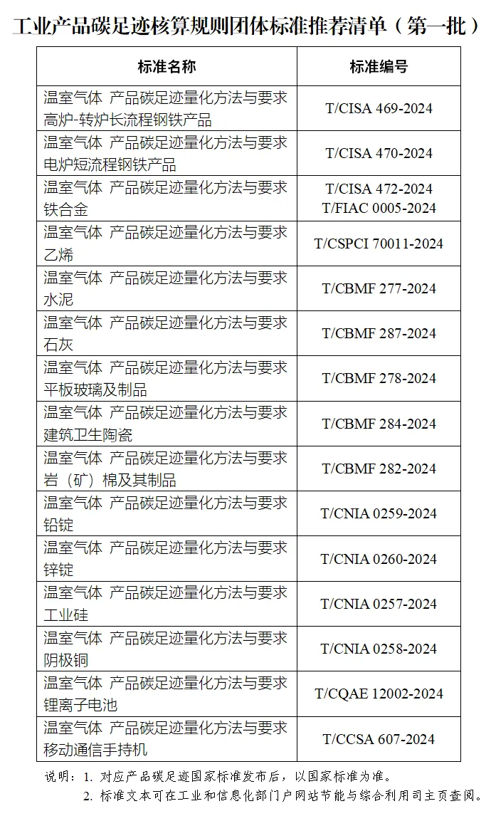 為加快提升工業(yè)產(chǎn)品碳足跡管理水平,建立健全碳足跡管理體系,促進(jìn)工業(yè)綠色低碳轉(zhuǎn)型,經(jīng)相關(guān)標(biāo)準(zhǔn)化機(jī)構(gòu)推薦、專家評(píng)審、網(wǎng)上公示等程序,工業(yè)和信息化部、生態(tài)環(huán)境部、國(guó)家發(fā)展改革委、市場(chǎng)監(jiān)管總局確定了15項(xiàng)工業(yè)產(chǎn)品碳足跡核算規(guī)則團(tuán)體標(biāo)準(zhǔn)推薦清單(第一批),現(xiàn)予以公布。