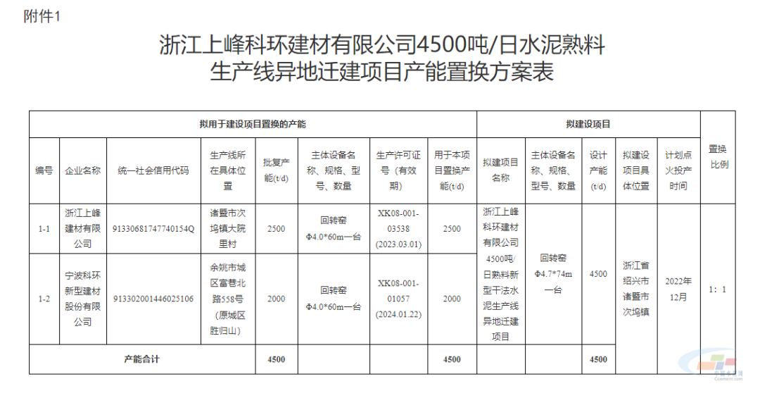 浙江上峰科環(huán)建材有限公司申請(qǐng)撤銷《浙江上峰科環(huán)建材有限公司4500噸/日水泥熟料生產(chǎn)線異地遷建項(xiàng)目產(chǎn)能置換方案》。經(jīng)對(duì)照《水泥玻璃行業(yè)產(chǎn)能置換實(shí)施辦法(2024年本)》(工信部原〔2024〕206號(hào))進(jìn)行審核,現(xiàn)撤銷該產(chǎn)能置換方案并通告。