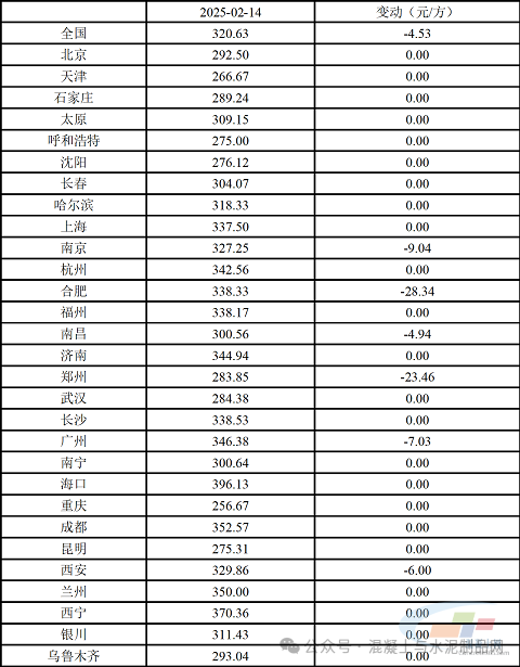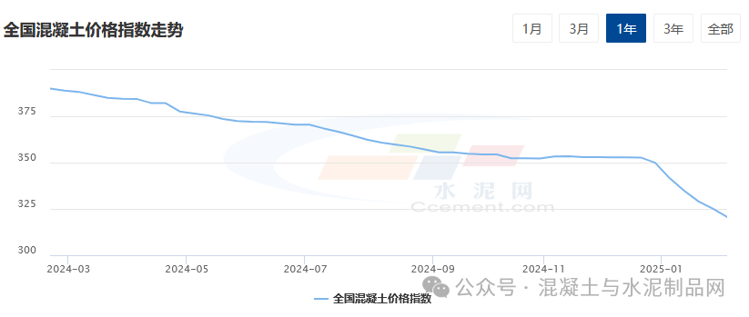 2月10日至2月14日,全國混凝土價格指數(shù)報收320.63點,環(huán)比下跌1.39%,同比跌幅為17.78%。分地區(qū)來看,陜西、上海、內(nèi)蒙古、山西、湖北、山東、廣東以及湖南局部混凝土價格下調(diào)10-30元/方不等,國內(nèi)其他省市混凝土價格繼續(xù)保持穩(wěn)定。