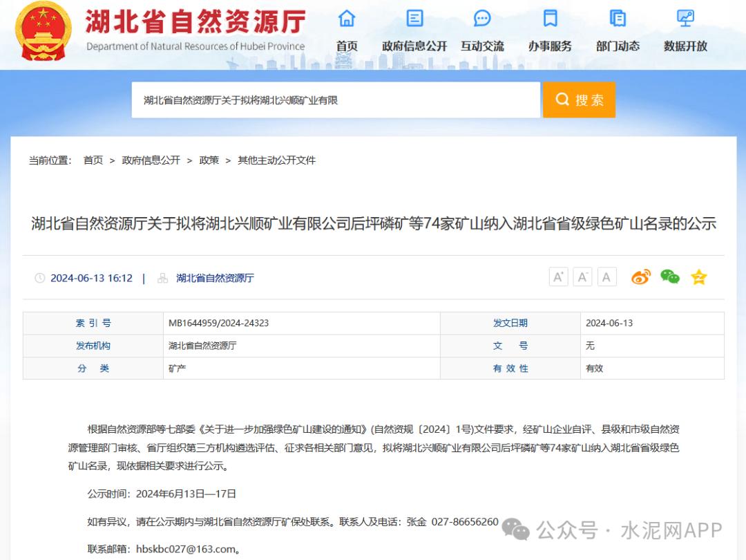 近日,湖北省自然資源廳發(fā)布湖北省省級綠色礦山名錄的公示,其中包含多個水泥企業(yè)礦山。