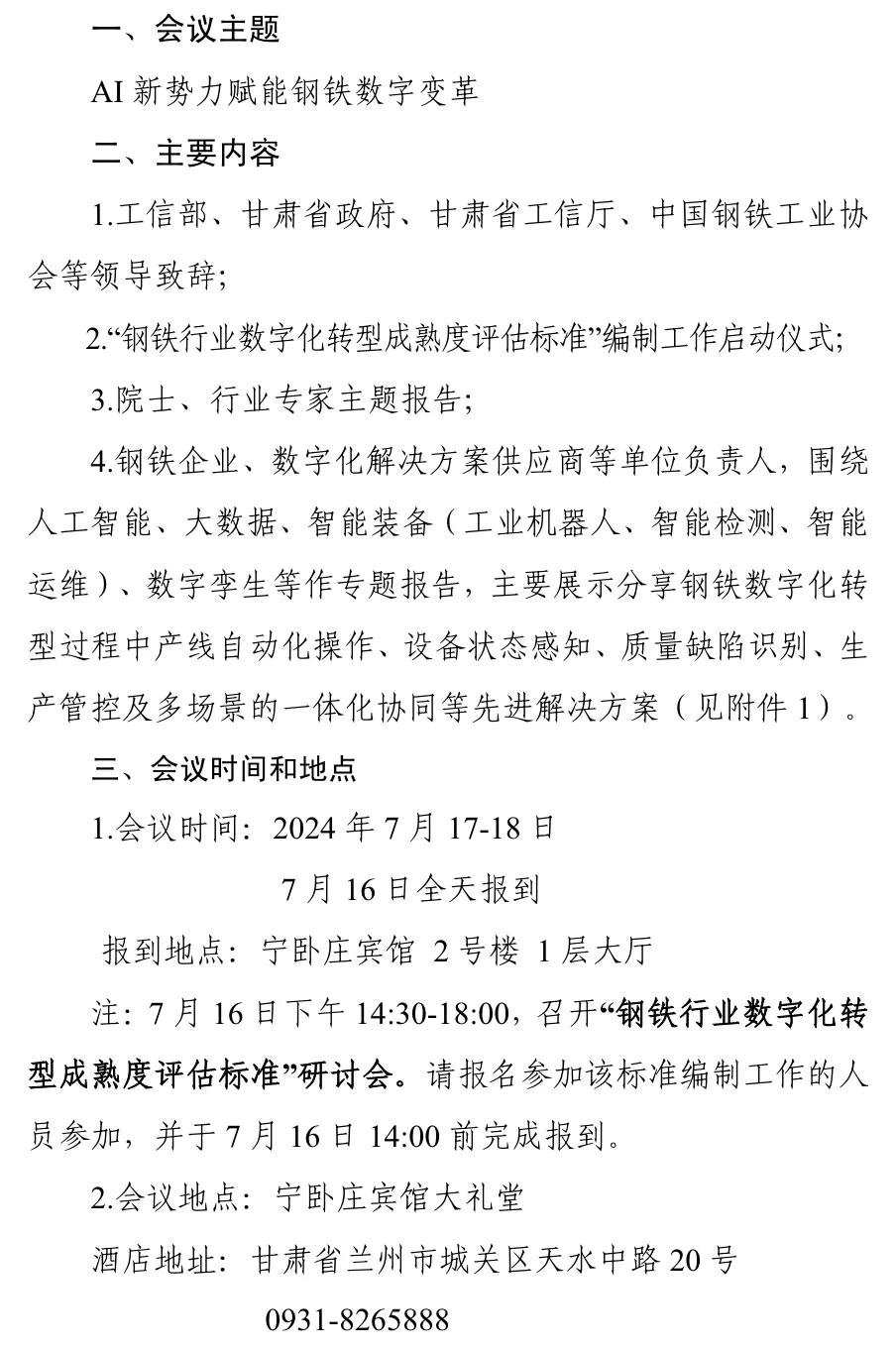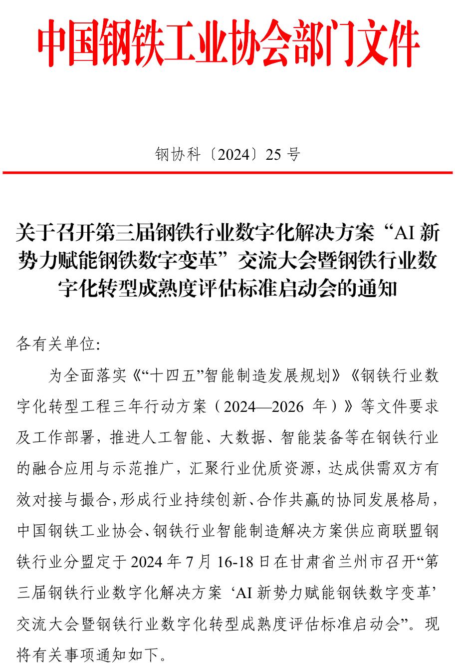 關于召開?鋼鐵行業(yè)數(shù)字化轉型成熟度評估標準啟動會的通知
