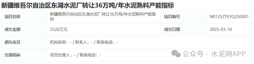 據(jù)了解,本次轉(zhuǎn)讓水泥熟料產(chǎn)能指標(biāo),生產(chǎn)時間300天/年,產(chǎn)能1200噸/天,生產(chǎn)能力36萬噸/年。