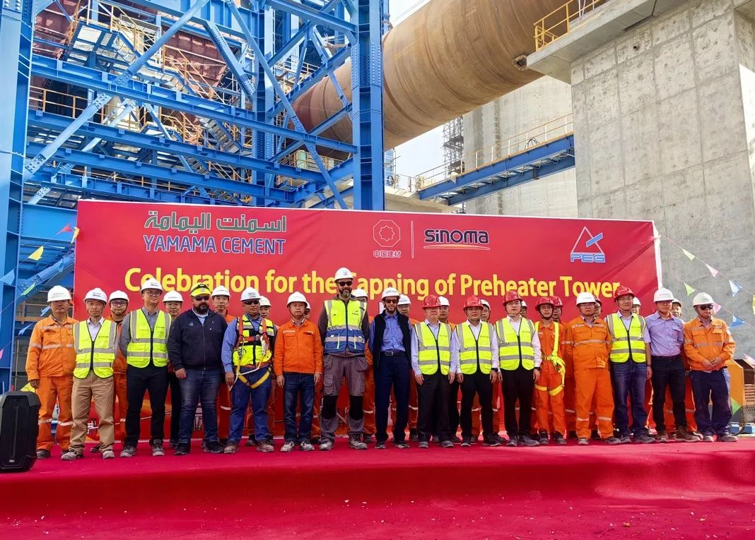 沙特當?shù)貢r間3月29日下午3點,由中材海外總承包,邯鄲中材承建的沙特YAMAMA水泥公司12500t/d搬遷升級改造項目窯尾塔架順利封頂。