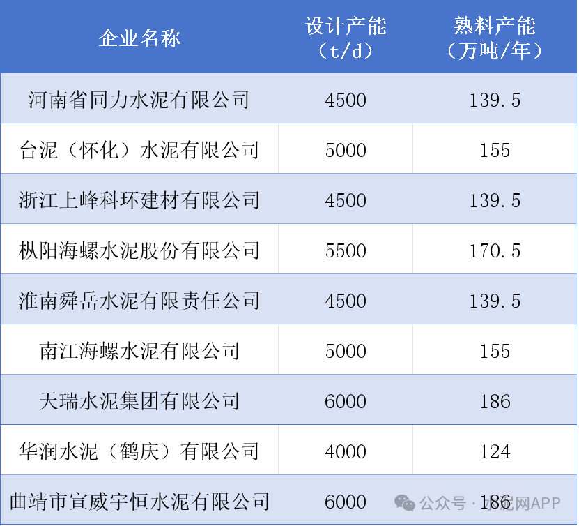 據(jù)統(tǒng)計(jì),今年以來(lái),加上上述生產(chǎn)線已有9條水泥熟料生產(chǎn)線建設(shè)項(xiàng)目不再推進(jìn),合計(jì)年產(chǎn)能1395萬(wàn)噸(按照310天計(jì)算),詳情見下表: