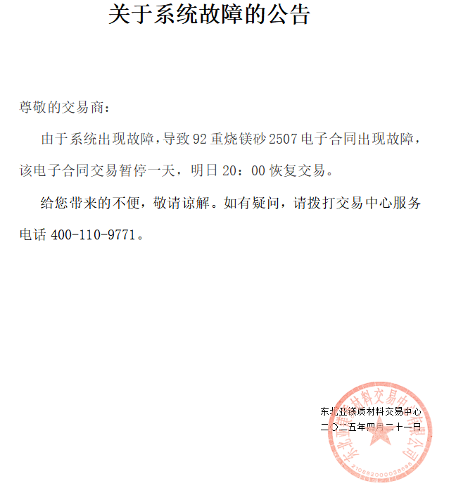 關(guān)于系統(tǒng)故障的公告