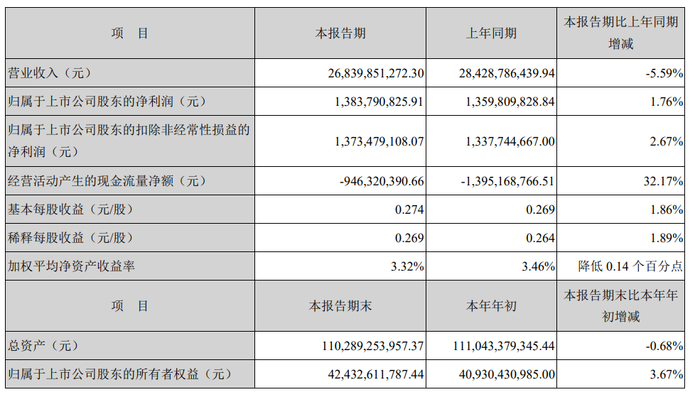 中信特鋼:一季度凈利潤(rùn)13.84億元,同比增長(zhǎng)1.76%