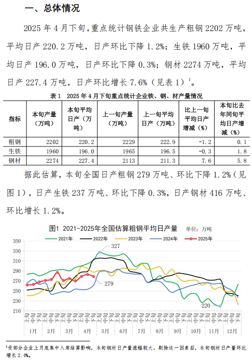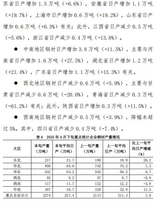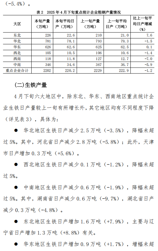 4月下旬重點(diǎn)企業(yè)鋼鐵產(chǎn)量旬報
