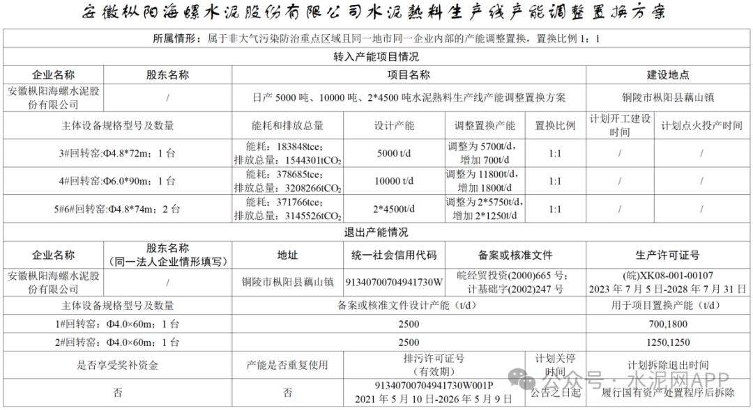 5月13日,安徽省工信廳發(fā)布“關(guān)于安徽樅陽海螺水泥股份有限公司水泥熟料生產(chǎn)線項(xiàng)目產(chǎn)能調(diào)整置換方案的公示”。