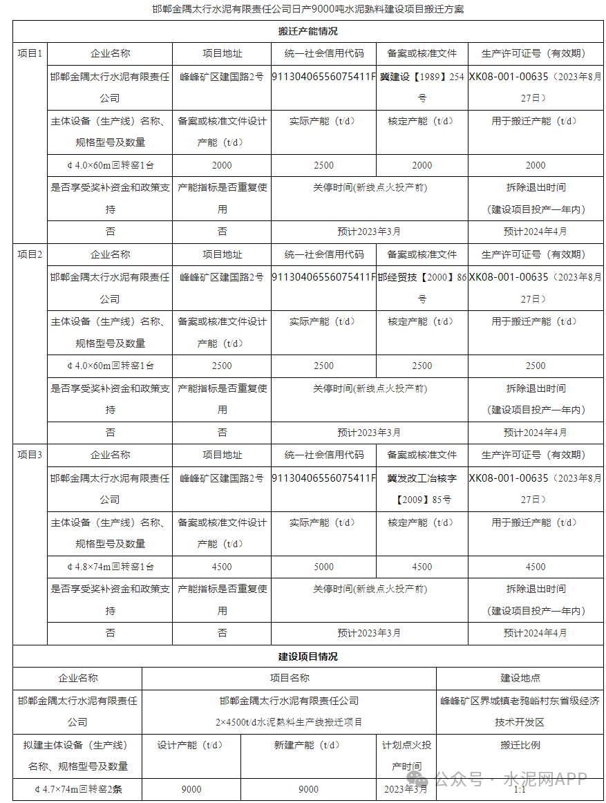 5月21日,河北省工信廳發(fā)布“邯鄲金隅太行水泥有限責(zé)任公司水泥熟料產(chǎn)能搬遷方案變更公告”。